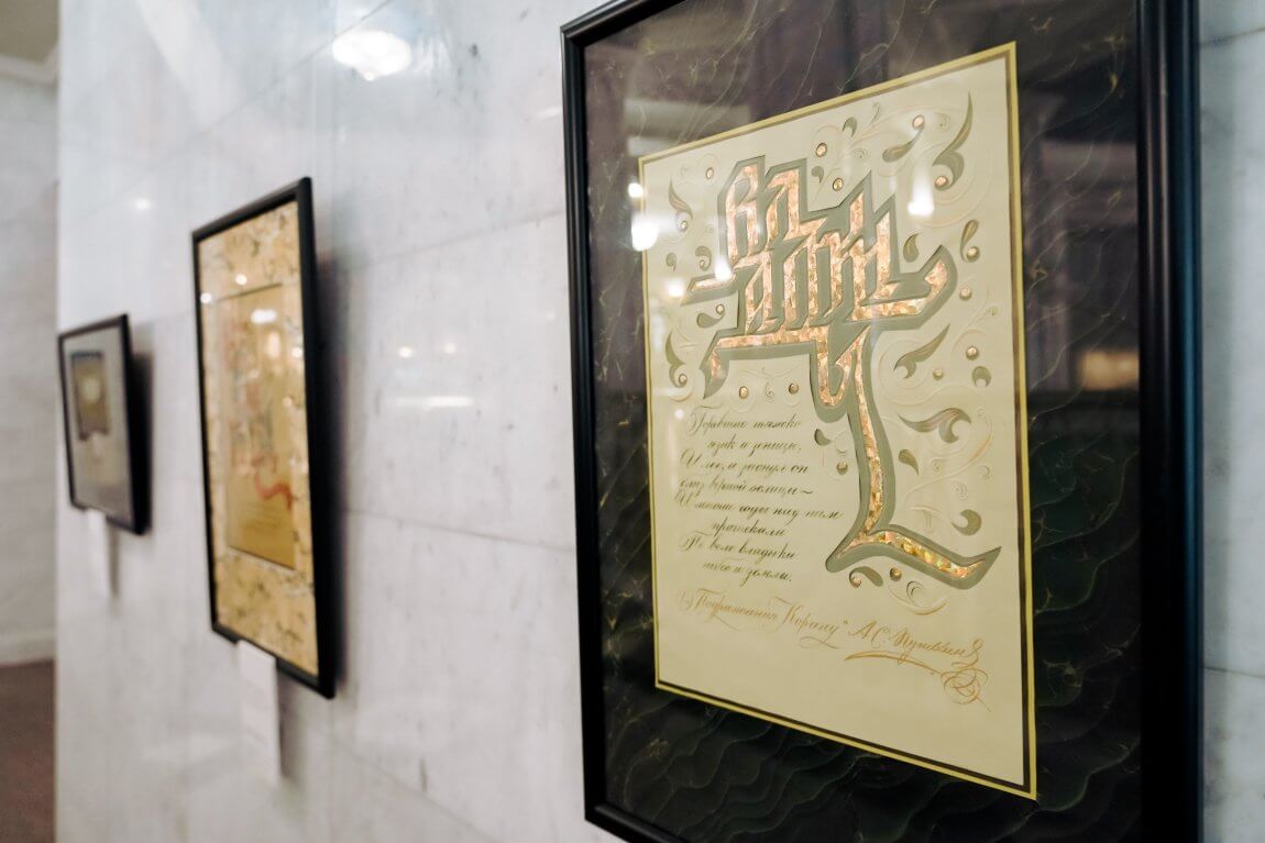 В основе выставки – 33 каллиграфические композиции. Специально для выставочного проекта 11 авторов Центра каллиграфии «От Аза до Ижицы» (г. Санкт-Петербург) из разных российских городов создали по 3 произведения с цитатами из «Подражаний Корану». Эти работы объединяет единый формат каллиграфического листа; способ начертания букв, который соответствует духу эпохи и лёгкости пушкинской поэзии; объёмные элементы, создающие многомерность, созвучную глубине текста Пушкина.
