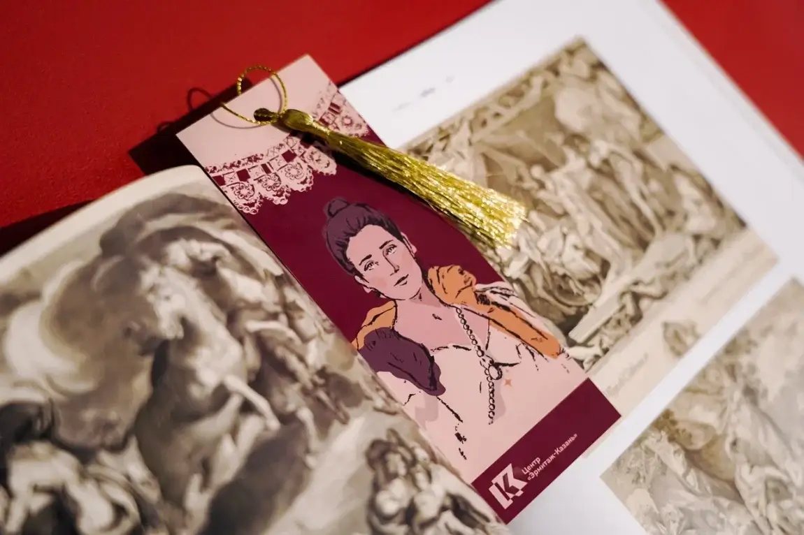 Двусторонняя закладка с кисточкой и изображением Зинаиды Николаевны Юсуповой и Сююмбике.