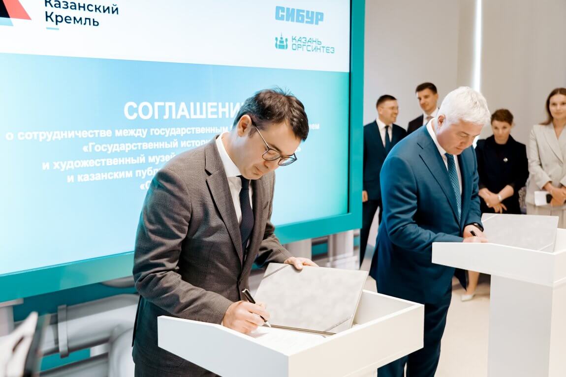 Сегодня на открытии выставки «Дом полимеров» в здании Присутственных мест Казанского Кремля заключили соглашение о сотрудничестве с «Казаньоргсинтез». Документ подписали директор Музея-заповедника Ильнур Рахимов и генеральный директор предприятия Айрат Сафин.