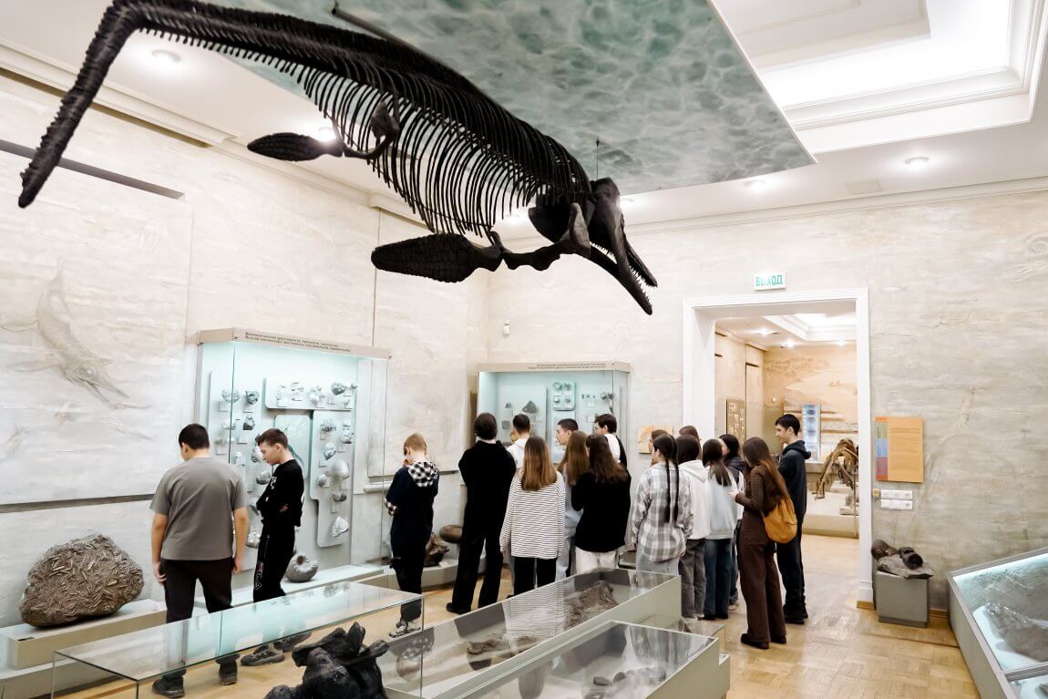 Коллекция метеоритов, интерактивный телескоп, космические весы позволят приобщиться к тайнам Вселенной. Сверкающие гранями кристаллов и отполированных срезов минералогические диковинки со всего света собраны в зале «Минералы Земли». Гипотезы возникновения жизни, древнейшие обитатели планеты, первые позвоночные животные и наземные растения, представлены в залах «Начало пути» и «Мир древней жизни».