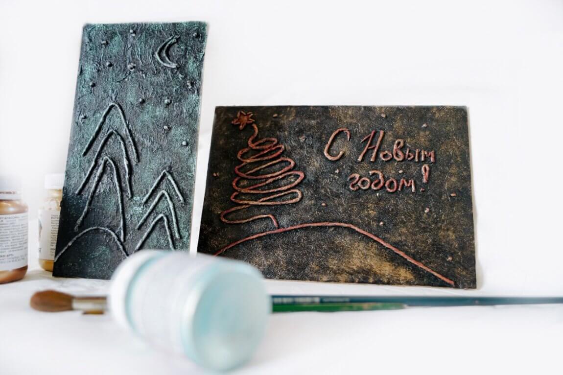 Изготовление новогодней композиции в технике «пейп-арт» – имитация ковки по металлу.